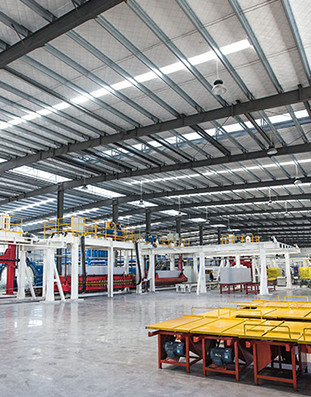 生產設備齊全,配有多條鋼結構、網架結構,彩鋼結構生產線,及樓承板、彩鋼板、夾芯板等生產設備,產品質量可靠。